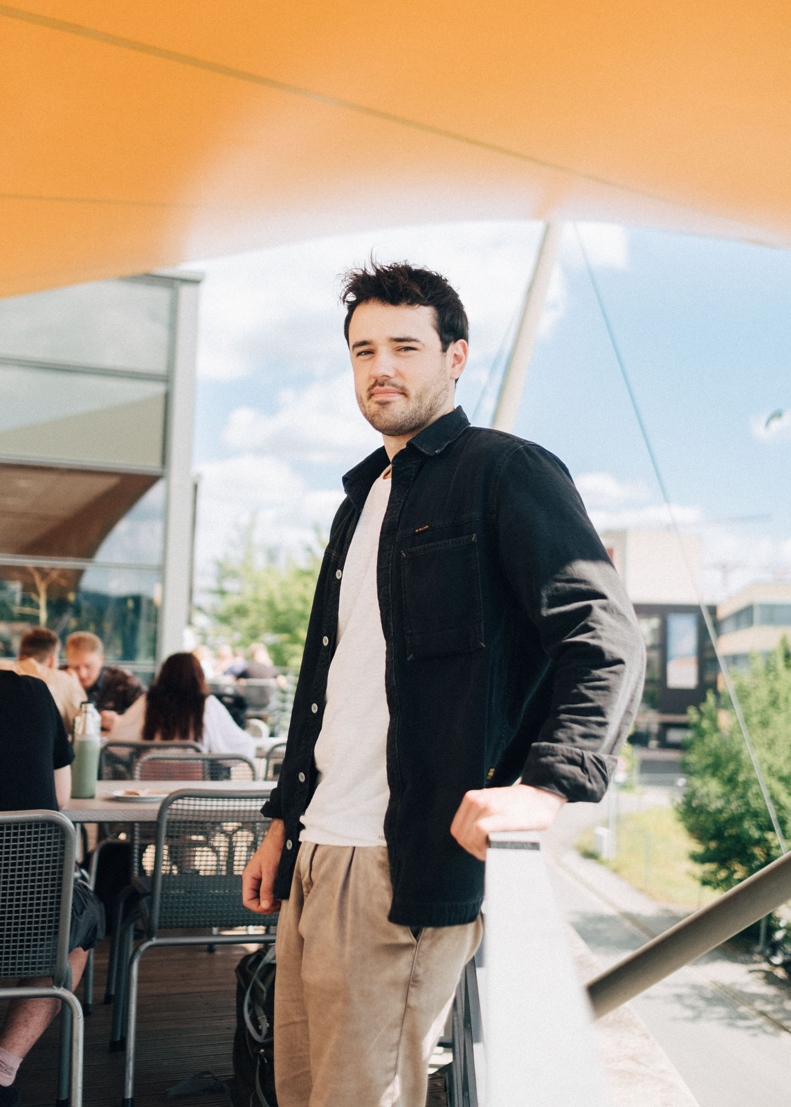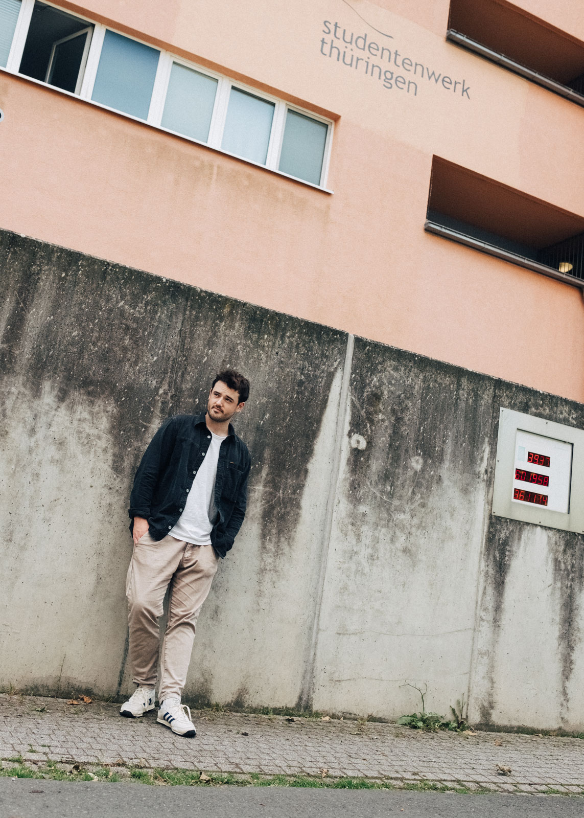 Liam Thomson ist 24 und lebt in Jena. Er studiert duale Informatik, pendelt zwischen Hörsaal und Großraumbüro, zwischen Theorie und Anwendung. Geboren in Berlin, aufgewachsen in Schottland, bringt er eine internationale Perspektive in den deutschen Studienalltag. Für ZEIT Campus habe ich ihn porträtiert – an einem Sommertag, irgendwo zwischen Bildschirmlicht und Straßenwärme. Entstanden ist ein Porträt über einen, der seinen Weg geht. Nicht geradlinig, aber mit klarem Blick.
